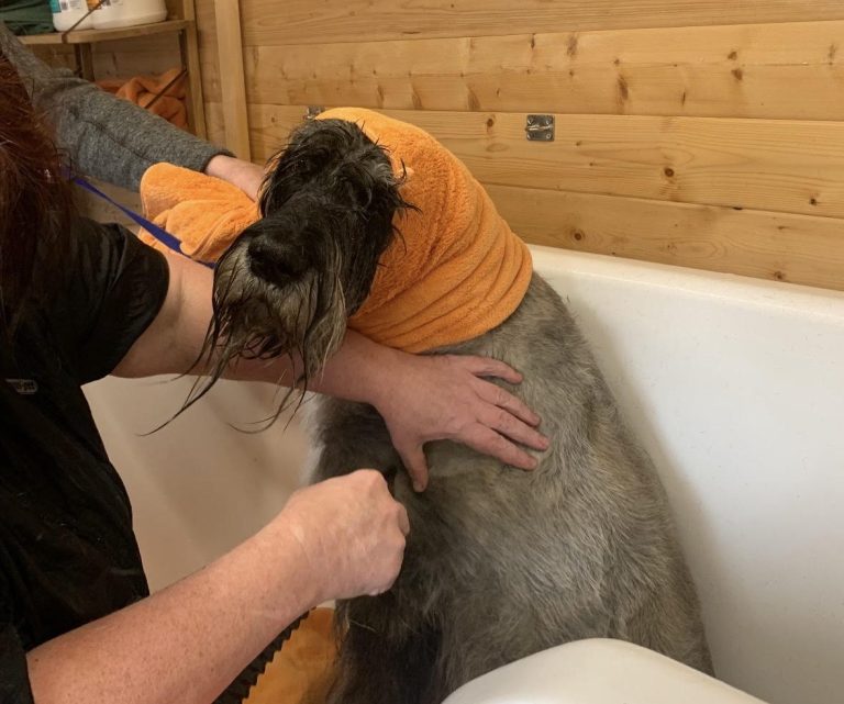Full Groom: Clip or scissor all over. Including coat freshen up, natural dry-foam shampoo, nails and gland-check. From £35